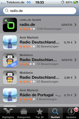 In den AppStore und dort nach dem App radio.de suchen und dieses Installieren.